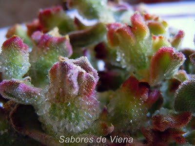 La cuestión es que cuando las probé, me quedé asombrada, porque efectivamente, estas flores saben a percebes. Esos minúsculos globulitos que las recubren, parecen llevar el mar en su interior y cuando las tienes en la boca, ese mar se libera y ¡Oh! Os aseguro que es una experiencia.